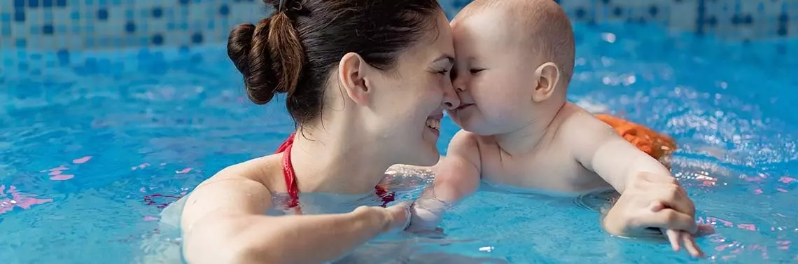 Przed wizytą na pobliski basen wyślij np. swojego partnera, żeby sprawdził panujące tam warunki. Możesz również sama wykonać telefon do kas basenowych i dopytać o szczegóły. Dowiedz się, czy jest specjalnie wydzielona przebieralnia, tzw. rodzinna, żeby móc spokojnie przyszykować się na wodne zabawy. Zorientuj się, jaka woda znajduje się w zbiornikach – chlorowana czy ozonowana. My rekomendujemy zbiorniki mieszane. Są najbezpieczniejsze dla delikatnej skóry malucha! Ważne, żeby basen posiadał odrębną strefę dla dzieci. Temperatura wody jest w niej nieco wyższa niż w tej dla dorosłych, a poziom wody to od 20 do 120 cm. Warto też zorientować się, czy są organizowane zajęcia dla rodzin z niemowlakami. Przy okazji następnych wizyt daje to możliwość ćwiczeń pod okiem eksperta. Jeśli mieszkasz w dużym mieście i wybór placówek jest duży, zapytaj koleżanek, które mają dzieci i korzystają z tego typu atrakcji, gdzie warto się wybrać. Możesz również poczytać opinie o danym miejscu w internecie lub napisać post na forum dla mam. Pozwoli Ci to zweryfikować, czy basen faktycznie jest przystosowany do wizyt rodzin z dziećmi, czy tylko jako taki się reklamuje.