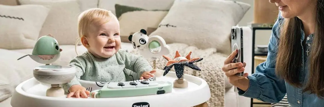 - Motywacja do ruchu: Zabawki, które po naciśnięciu toczą się i grają, zachęcając dziecko do podążania za nimi, mogą być wspaniałym motywatorem do nauki raczkowania i chodzenia. Podobnie działają maty do tańczenia czy interaktywne tunele.